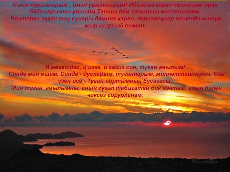 Синдә мин яшим. Синдә - дусларым, туганнарым, милләттәшләрем. Син үзең исә - Туган йортымның бусагасы.
