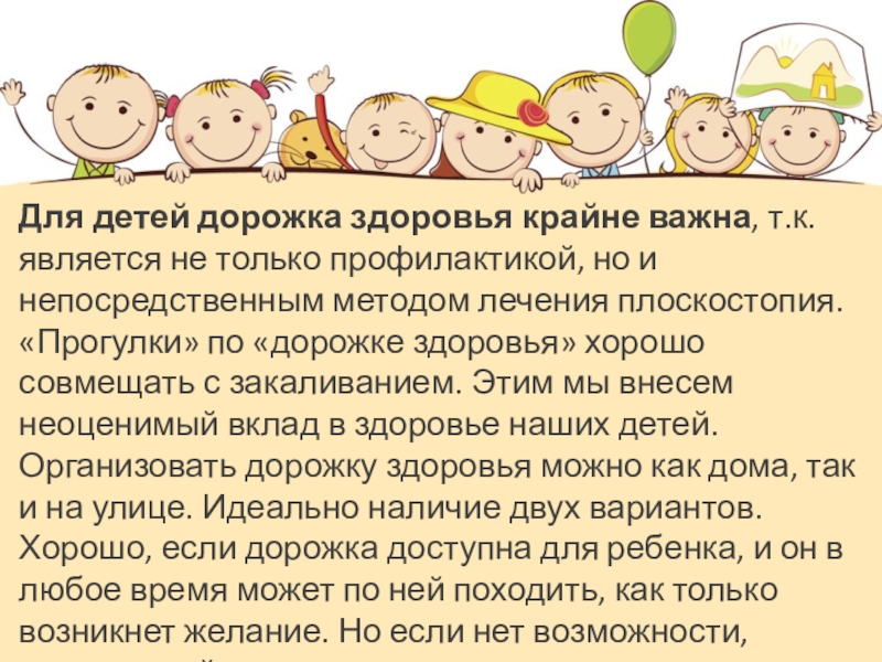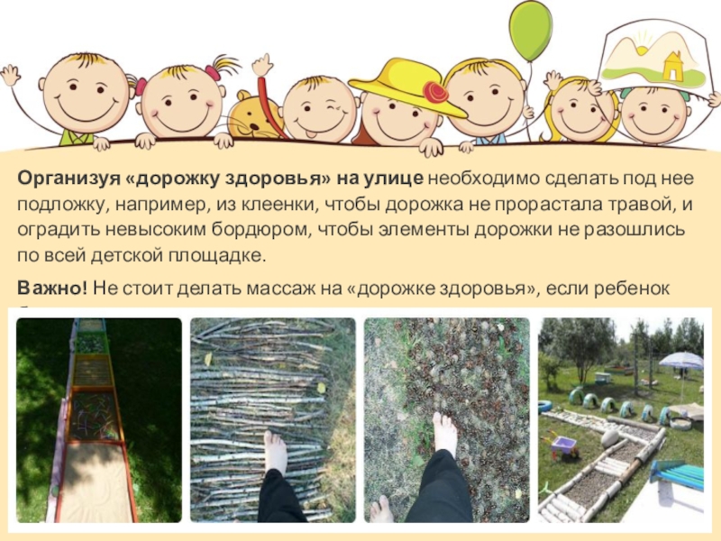 Слайд 4Для детей дорожка здоровья крайне важна, т.к. является не только профилактикой,