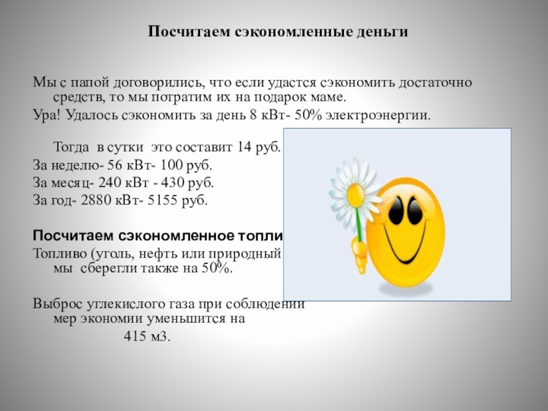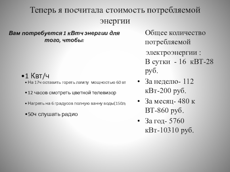 Слайд 8Теперь я посчитала стоимость потребляемой энергии
