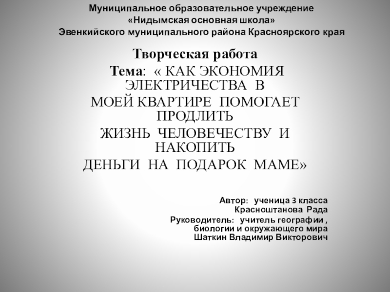 Тема: « КАК ЭКОНОМИЯ ЭЛЕКТРИЧЕСТВА В