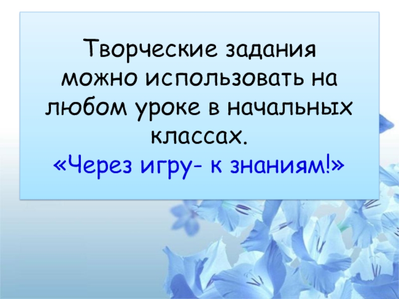 Слайд 3Творческие задания можно использовать на любом уроке в начальных классах. «Через игру- к