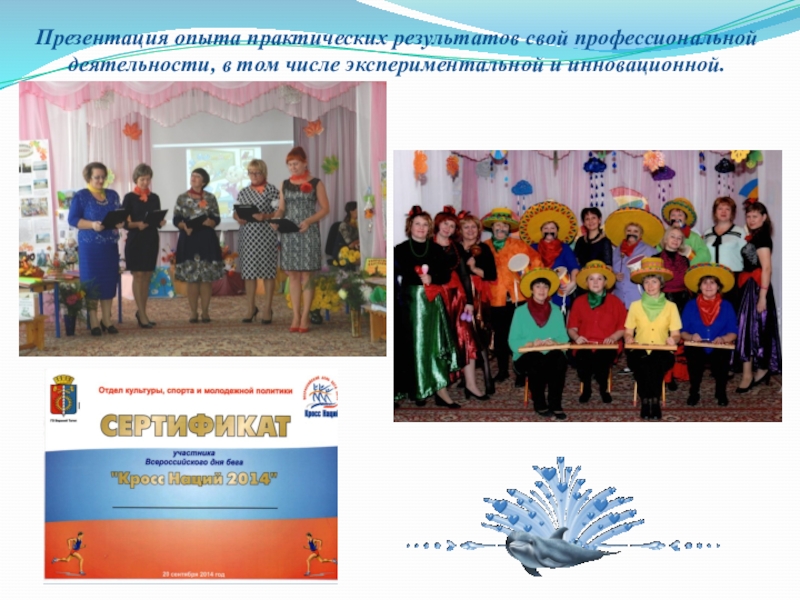 Слайд 39Презентация опыта практических результатов свой профессиональной деятельности, в том числе экспериментальной