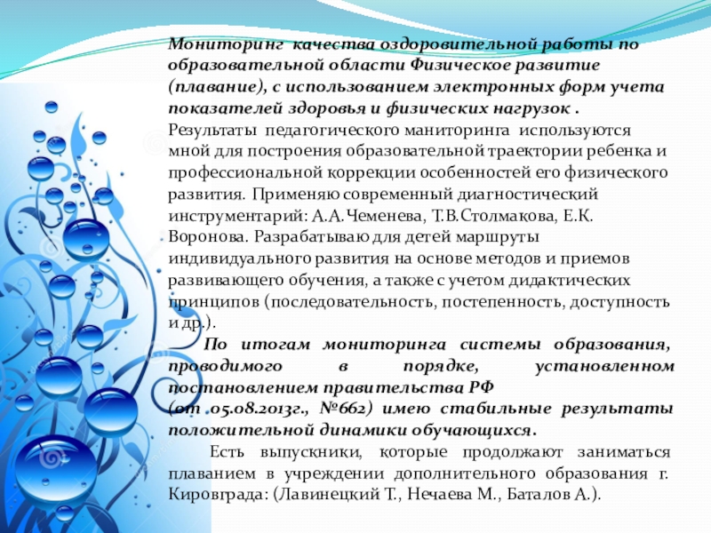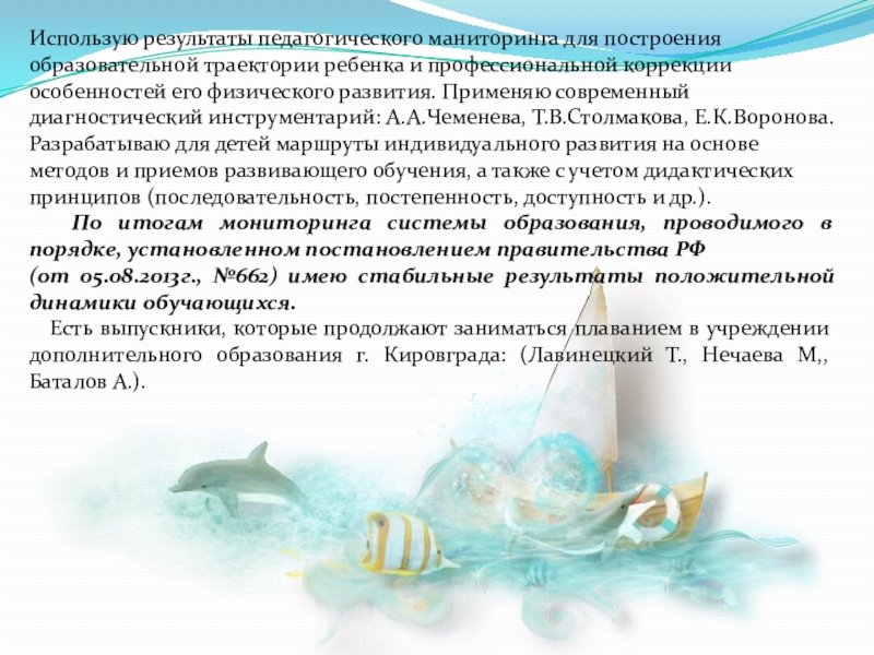 Есть выпускники, которые продолжают заниматься плаванием в учреждении дополнительного образования г. Кировграда: (Лавинецкий Т., Нечаева М., Баталов А.).