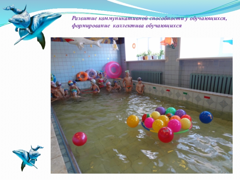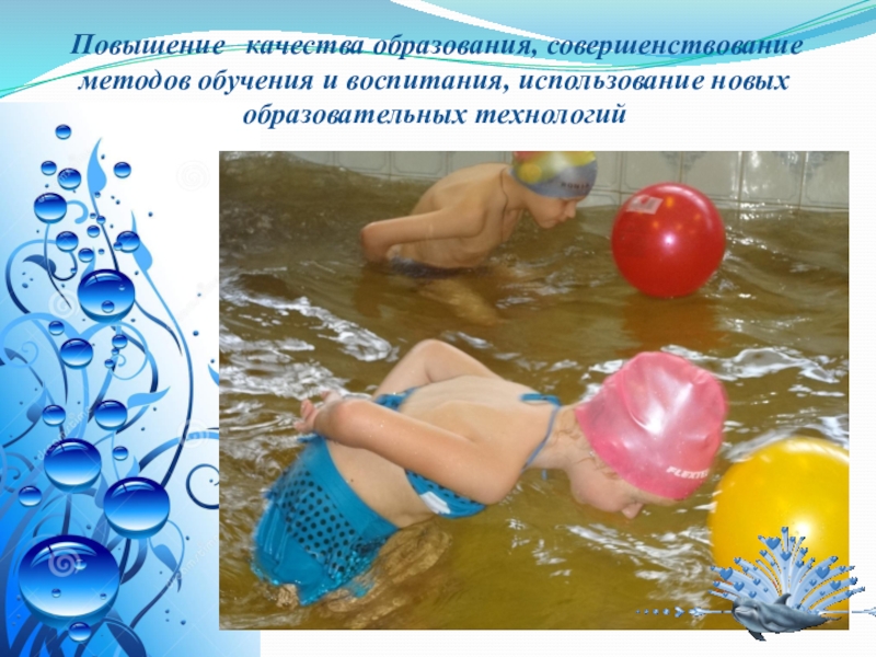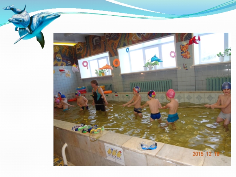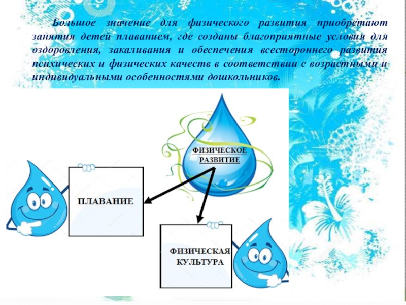 Слайд 9Большое значение для физического развития приобретают занятия детей плаванием, где созданы