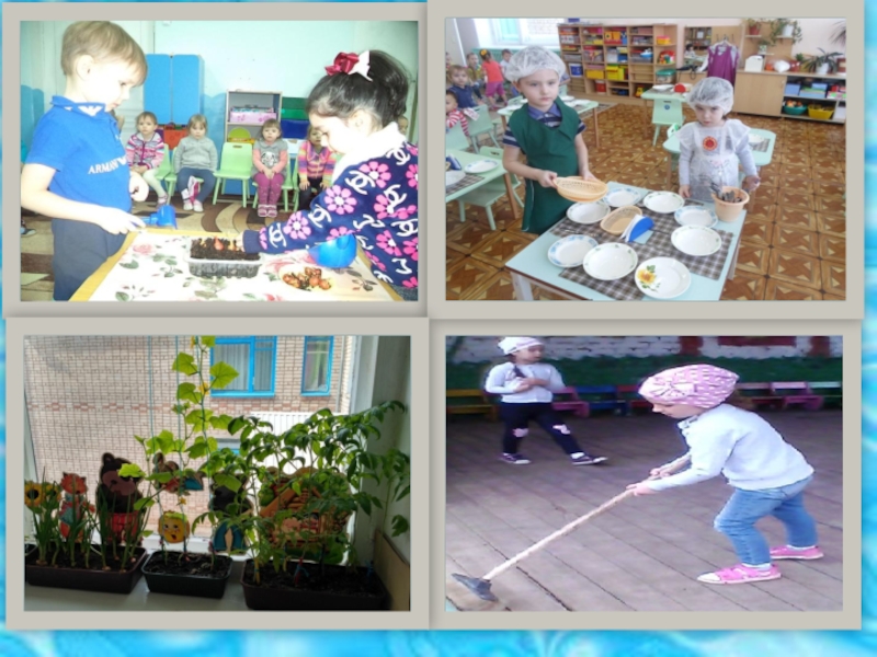 Все дети охотно убирают игрушки на место, помогают в подготовке к занятиям, ухаживают за животными и растениями: поливают растения, сажают лук, кормят птиц.