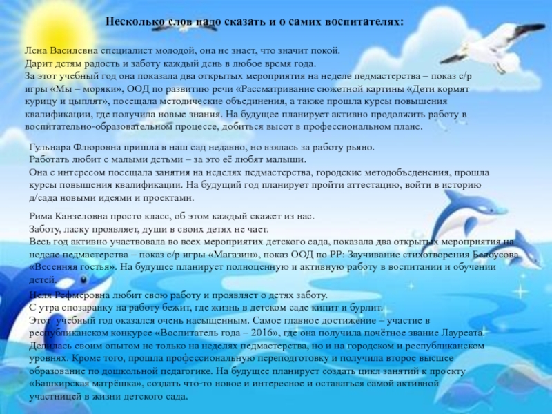 Слайд 40Несколько слов надо сказать и о самих воспитателях: