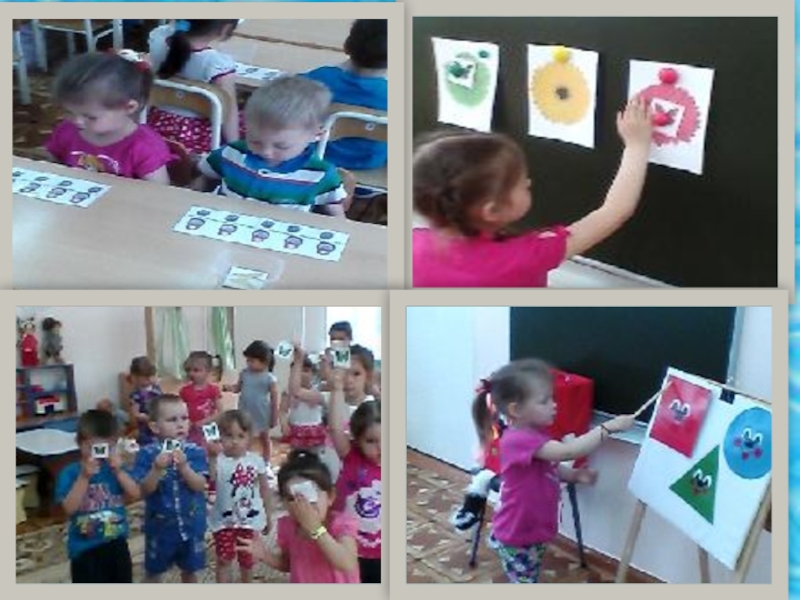 видеть общий признак предметов группы, составляли группы из однородных предметов и выделяли отдельные предметы, знакомились с геометрическими фигурами. Дети учились различать понятия «много», «один», «по одному», «ни одного», ориентироваться в пространстве и во времени. Не все дети различают пространственные направления от себя, плохо различают геометрические фигуры.