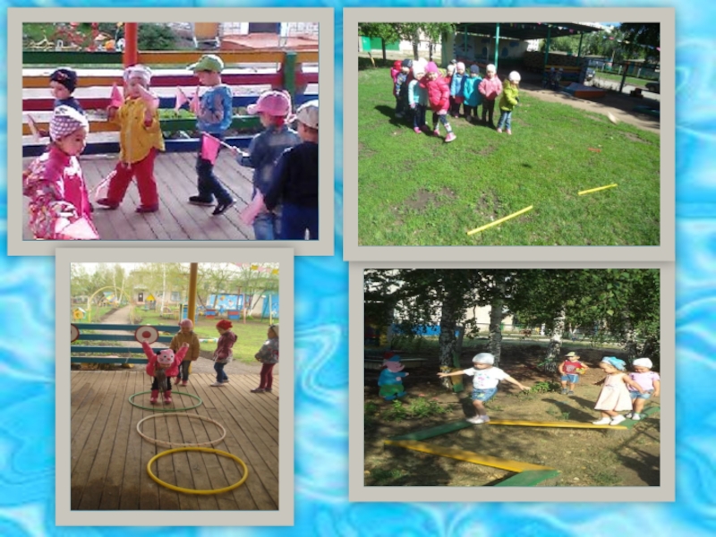 Учили детей ходить и бегать свободно, не шаркая ногами; строиться в колонну по одному, в шеренгу, круг, находить свое место при построениях. В течение года использовали игры и упражнения на метание, бег, прыжки, ориентировку в пространстве, ползание и лазание. Учили сохранять правильную осанку в любом положении. Всегда старались развить самостоятельность и творчество при выполнении физических упражнений, в подвижных играх.