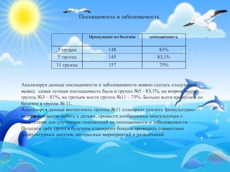 Анализируя данные воспитатель группы №11 планирует усилить физкультурно-оздоровительную работу с детьми, провести необходимые консультации с родителями для улучшения показателей по посещаемости и заболеваемости.