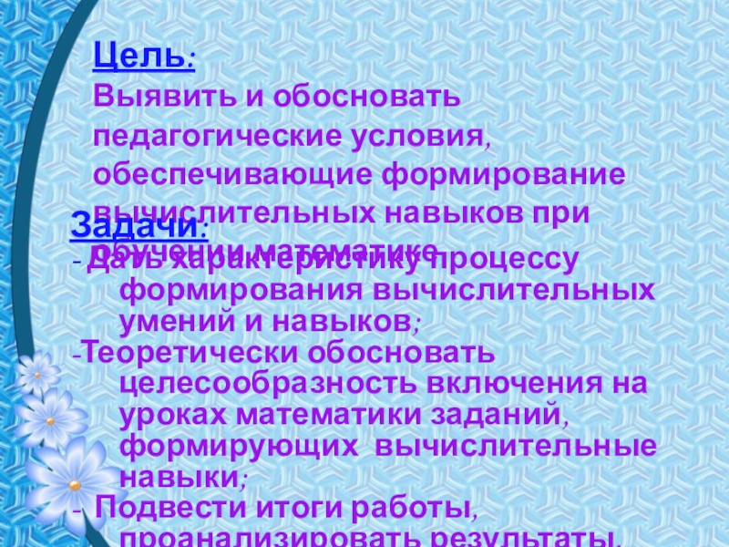 -Теоретически обосновать целесообразность включения на уроках математики заданий, формирующих вычислительные навыки;