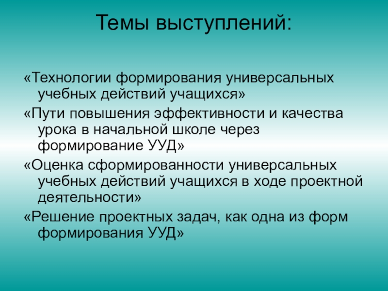 Значительная часть педагогов начальной школы умело применяют на практике различные современные образовательные технологии, нацеленные на формирование универсальных учебных действий.