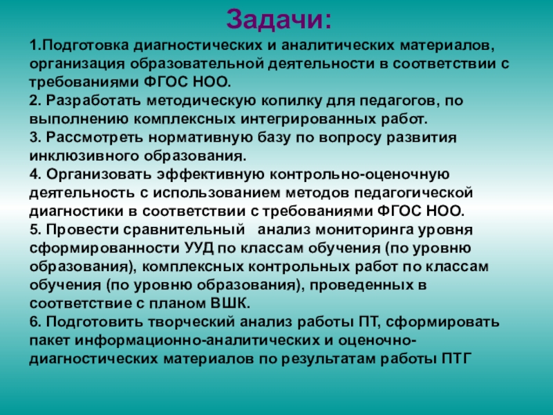 4. Организовать эффективную контрольно-оценочную деятельность с использованием методов педагогической диагностики в соответствии с требованиями ФГОС НОО.