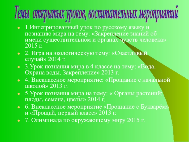 Темы открытых уроков, воспитательных мероприятий
