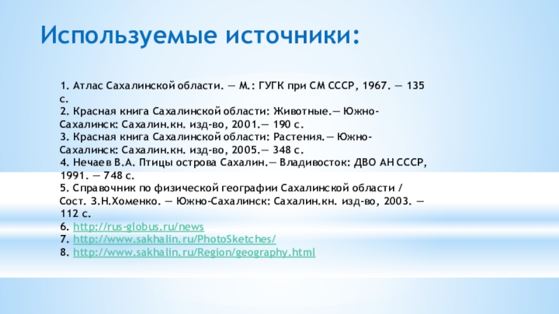 8. http://www.sakhalin.ru/Region/geography.html