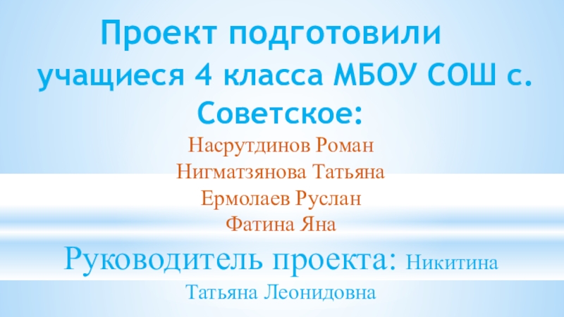 Руководитель проекта: Никитина Татьяна Леонидовна