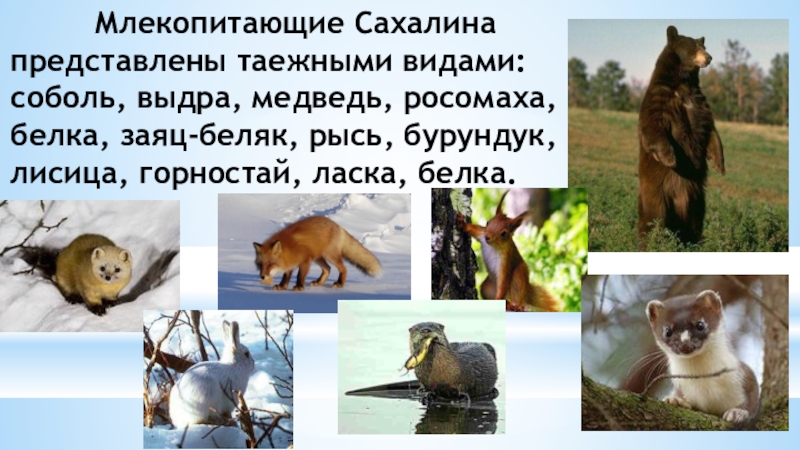 Слайд 13 Млекопитающие Сахалина представлены таежными видами: