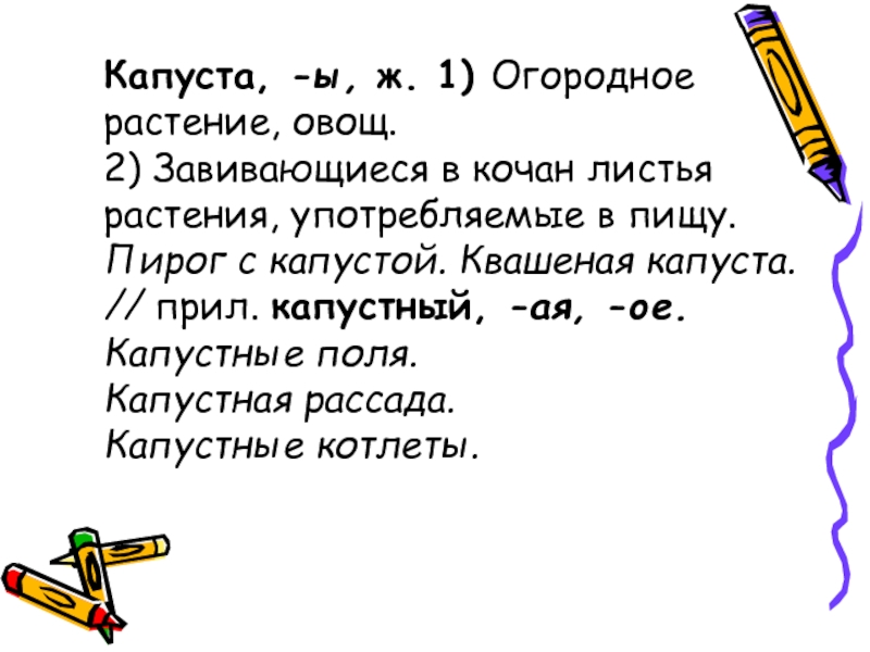 Слайд 6Капуста, -ы, ж. 1) Огородное растение, овощ.