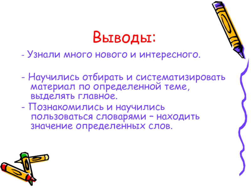 - Познакомились и научились пользоваться словарями – находить значение определенных слов.
