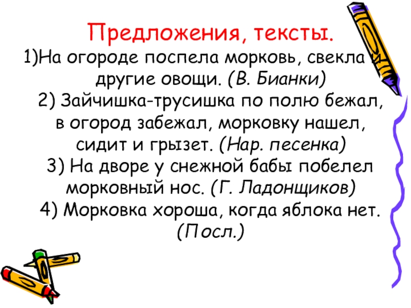 2) Зайчишка-трусишка по полю бежал, в огород забежал, морковку нашел, сидит и грызет. (Нар. песенка)