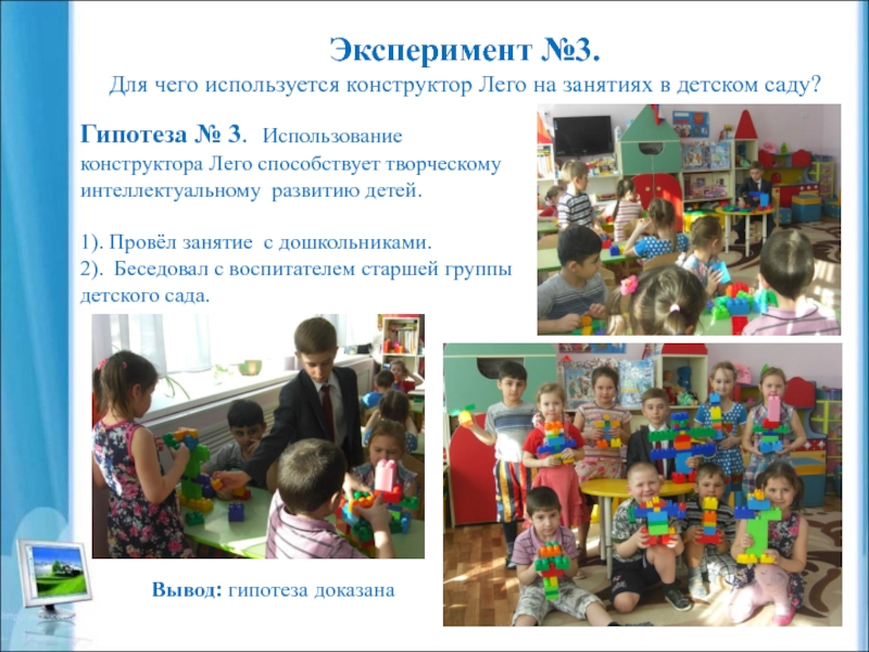 Гипотеза № 3. Использование конструктора Лего способствует творческому интеллектуальному развитию детей.