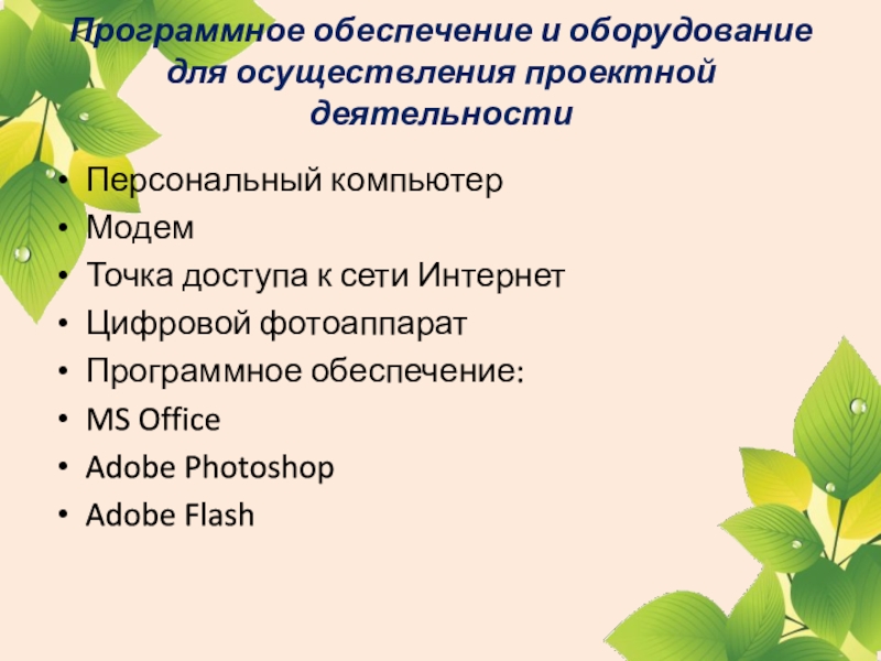 Программное обеспечение и оборудование для осуществления проектной деятельности