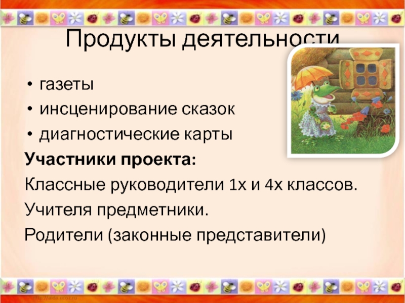 Это сайт презентаций, где можно хранить и обмениваться своими презентациями, докладами, проектами, шаблонами в формате PowerPoint с другими пользователями. Мы помогаем школьникам, студентам, учителям, преподавателям хранить и обмениваться учебными материалами.