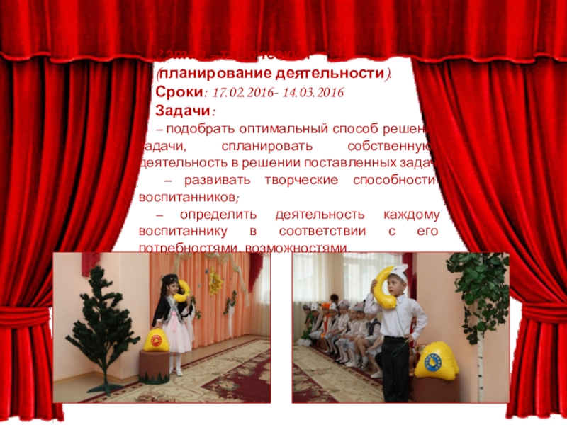 – изготовить необходимые декорации и атрибуты, обсудить костюмы;