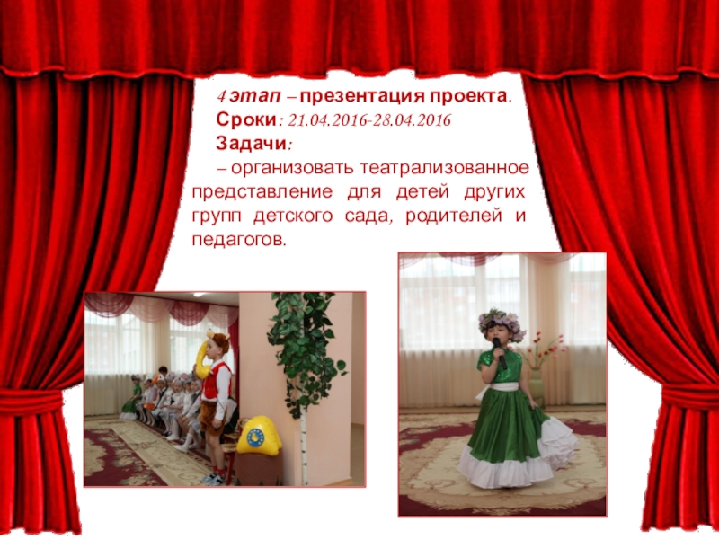 – организовать театрализованное представление для детей