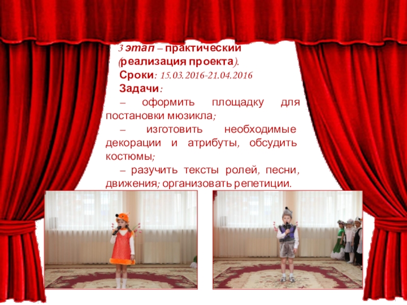 – заинтересовать детей постановкой мюзикла.