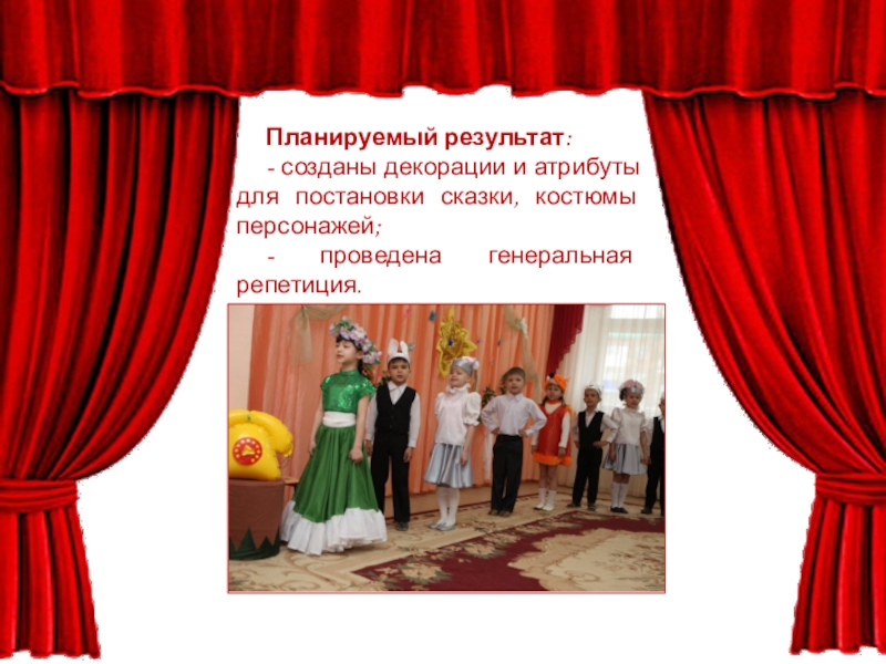 - созданы декорации и атрибуты для постановки сказки, костюмы персонажей;