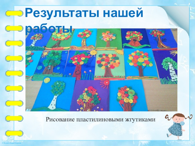 Для создания работ в технике рисование пластилиновыми жгутиками мы использовали