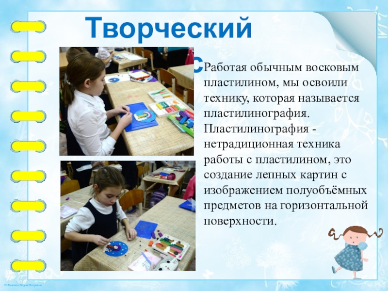 Слайд 22Работая обычным восковым пластилином, мы освоили технику, которая называется пластилинография. Пластилинография