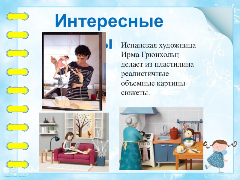 Испанская художница Ирма Грюнхольц делает из пластилина реалистичные объемные картины-сюжеты.
