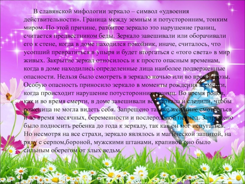 В славянской мифологии зеркало –