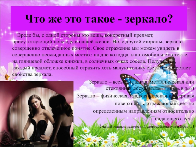 который во все времена был окружен ореолом мистики и тайны. Жизнь современного человека невозможно представить без зеркала. Что значит зеркало в нашей жизни?