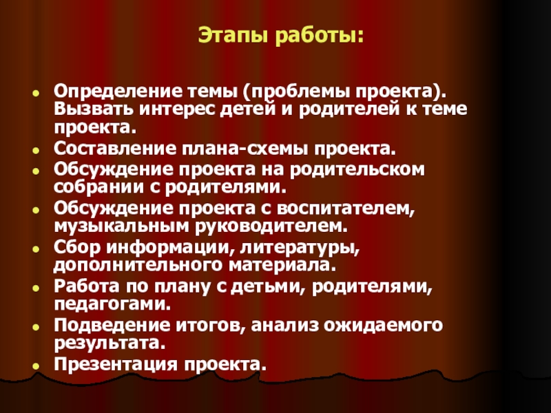 Обсуждение проекта с воспитателем, музыкальным руководителем.