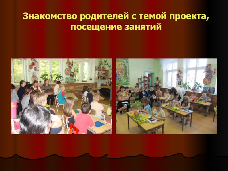 Слайд 21Знакомство родителей с темой проекта, посещение занятий