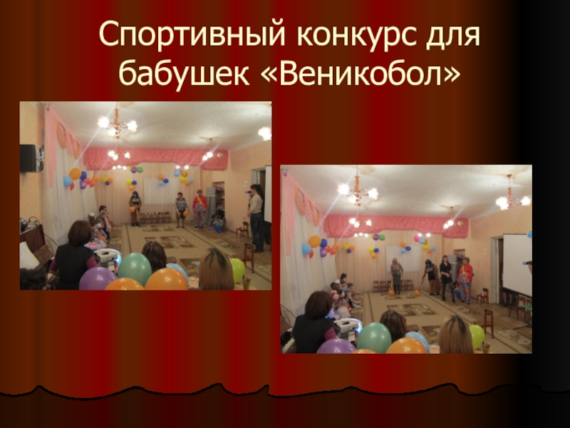 Слайд 34Спортивный конкурс для бабушек «Веникобол»