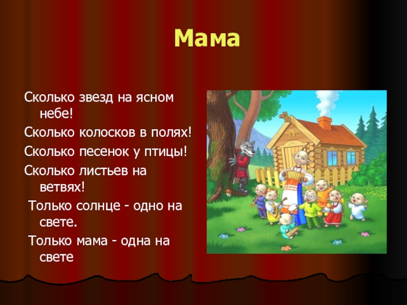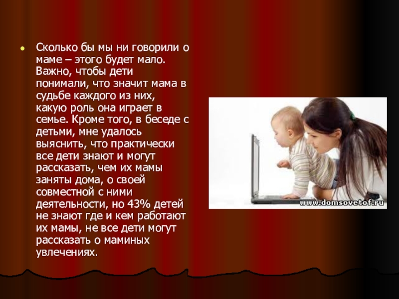 Слайд 2Сколько бы мы ни говорили о маме – этого будет мало.