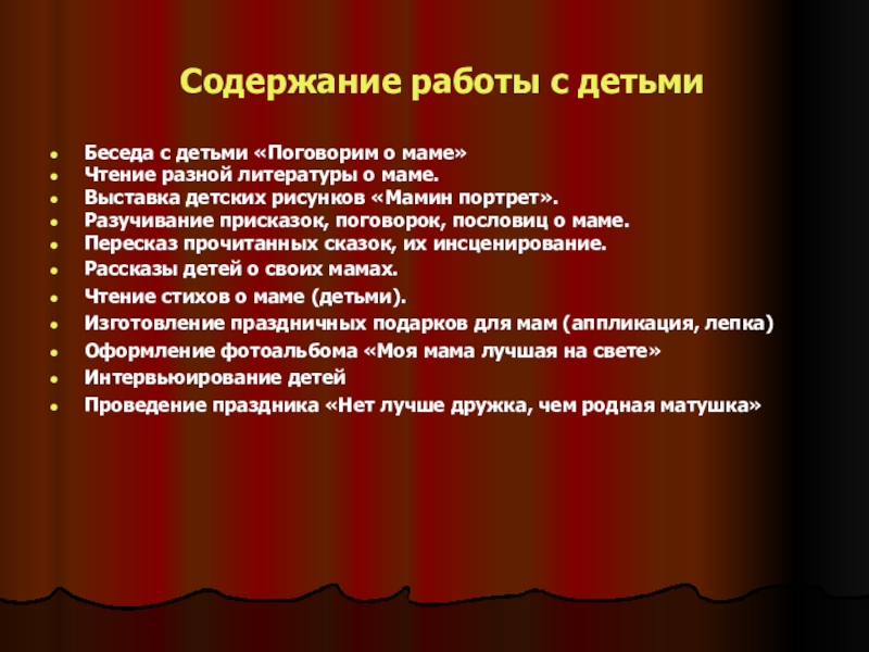 Проведение праздника «Нет лучше дружка, чем родная матушка»