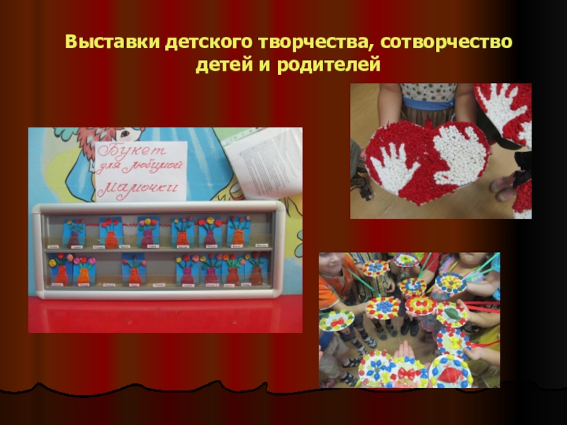 Слайд 23Выставки детского творчества, сотворчество детей и родителей