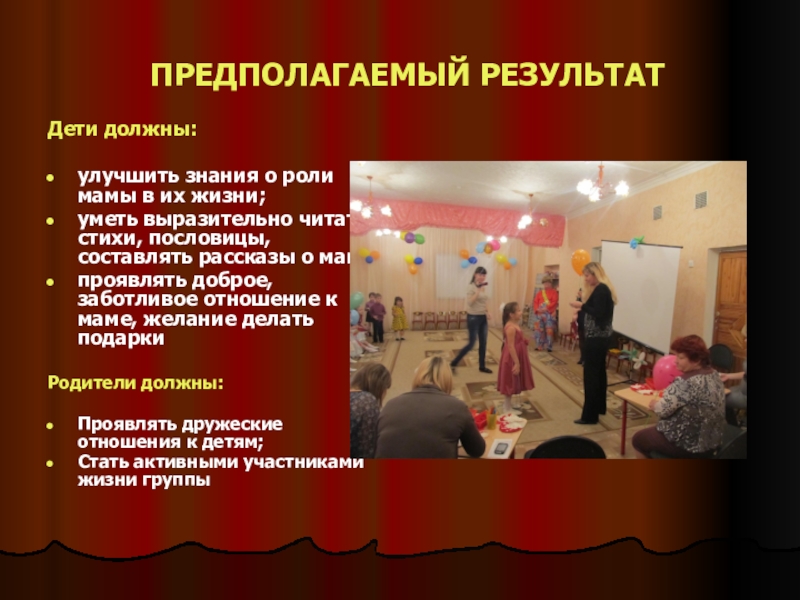 проявлять доброе, заботливое отношение к маме, желание делать подарки