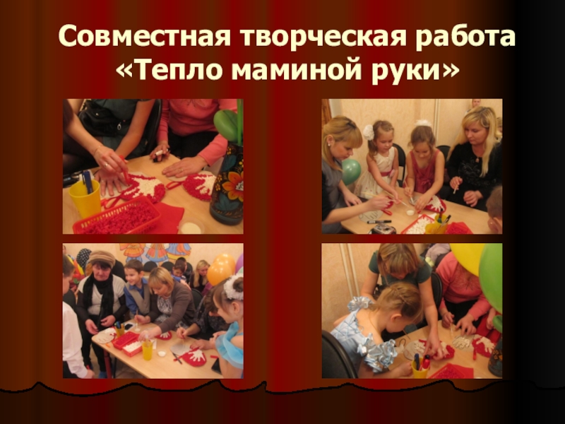 Слайд 35Совместная творческая работа «Тепло маминой руки»