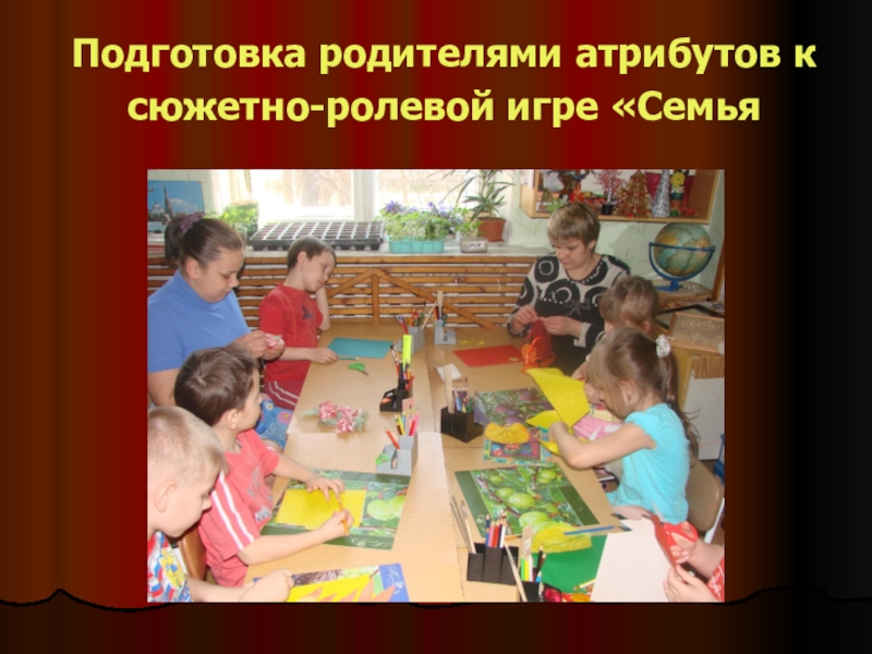 Слайд 25Подготовка родителями атрибутов к сюжетно-ролевой игре «Семья