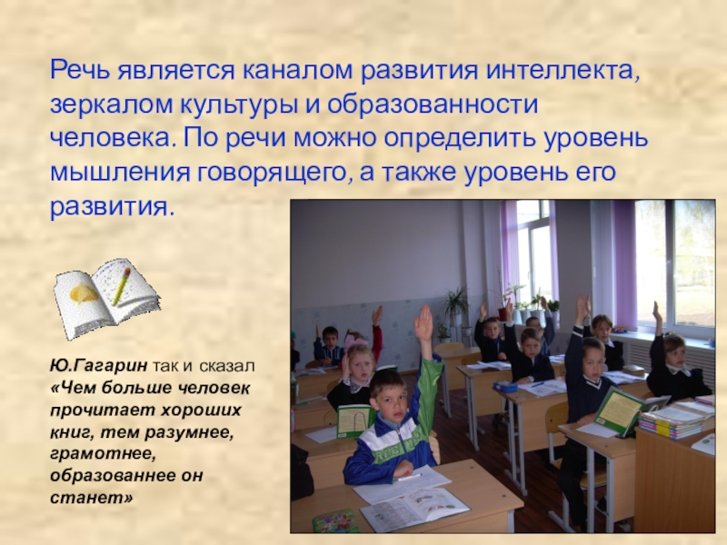 Ю.Гагарин так и сказал «Чем больше человек прочитает хороших книг, тем разумнее, грамотнее, образованнее он станет»
