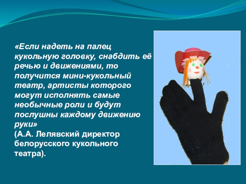 Слайд 3«Если надеть на палец кукольную головку, снабдить её речью и движениями,