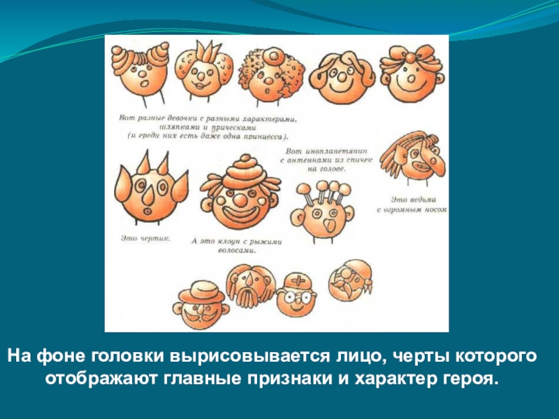 Слайд 23На фоне головки вырисовывается лицо, черты которого отображают главные признаки и