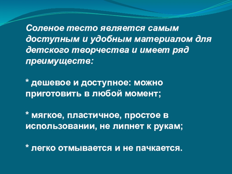 Слайд 7Соленое тесто является самым доступным и удобным материалом для детского творчества