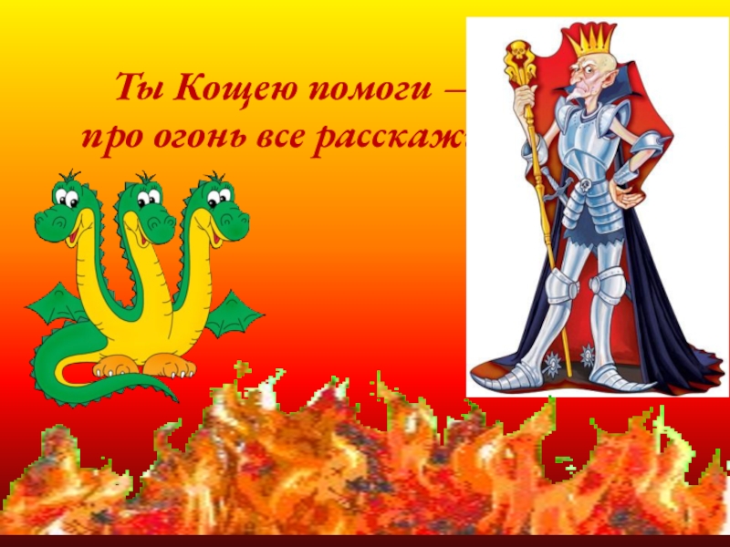 Слайд 2Ты Кощею помоги – про огонь все расскажи!