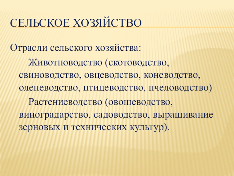 коневодство, оленеводство, птицеводство, пчеловодство)